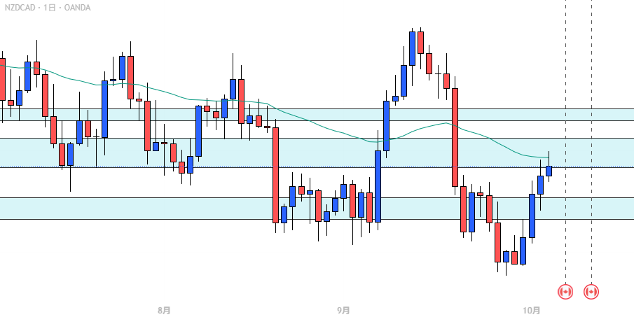 - NZD/CAD: 上抜けで上昇転換。レジサポ転換の動きに注目。