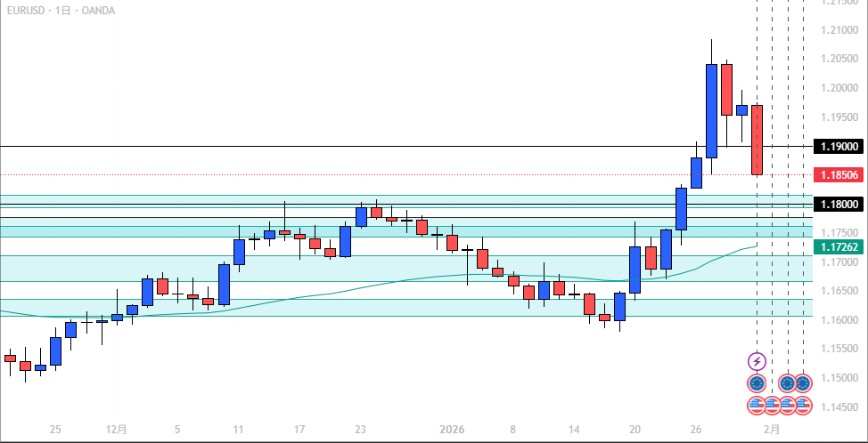 - EUR/USD: 押し目未形成、現在は調整波待ち。