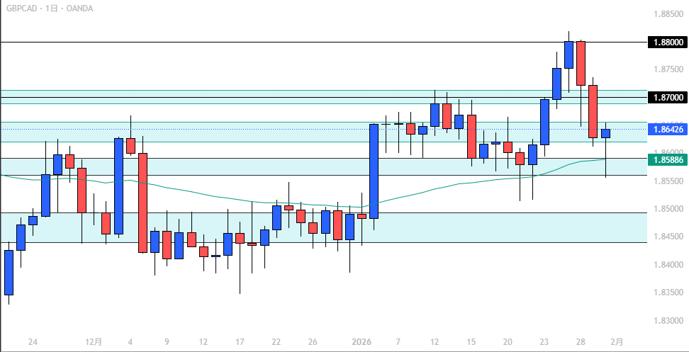 - GBP/CAD: 上位足は押し目候補、下位足に注意。
