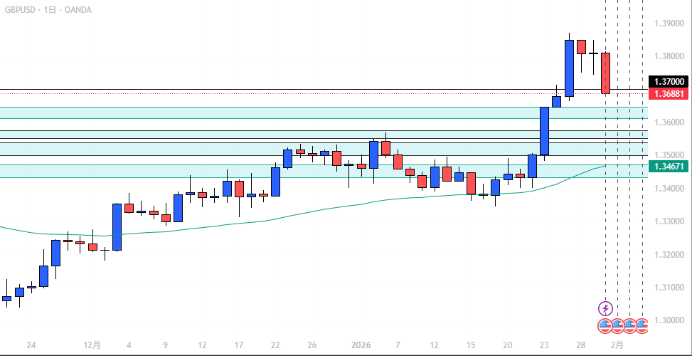- GBP/USD: 上昇継続、AOI+フィボ50%注目。