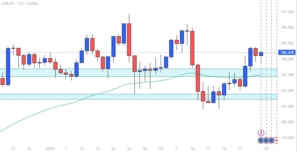 - EUR/JPY: 下目線維持も急騰、勢いが収まるまで待ち。
