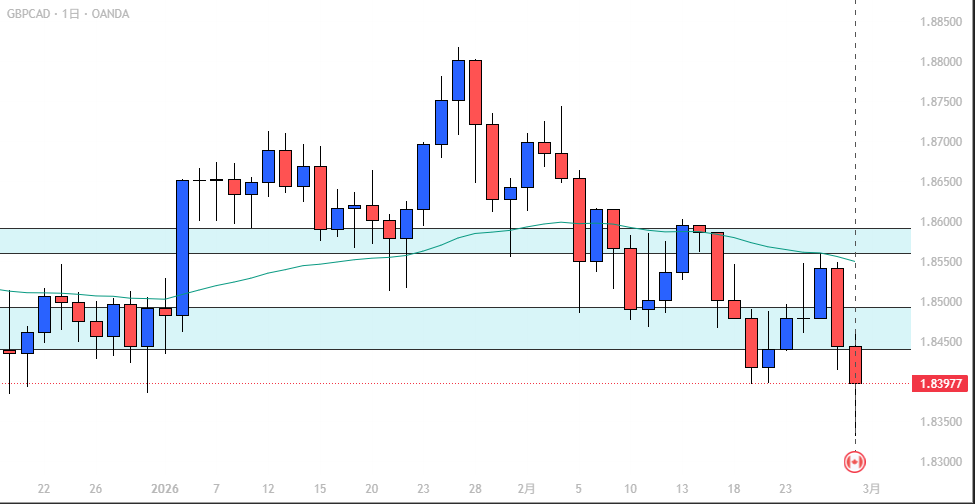 - GBP/CAD: AOI+EMAが機能し安値更新。