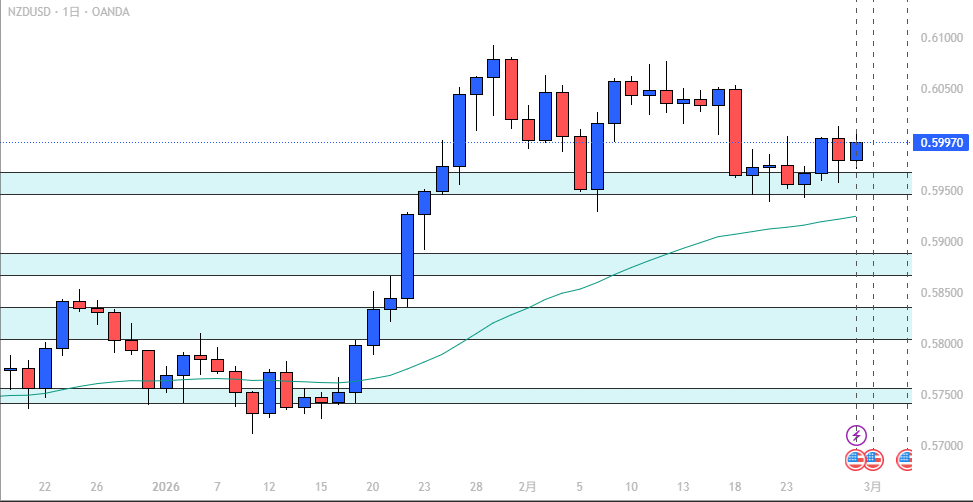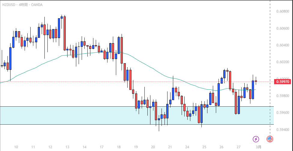 - NZD/USD: 上昇鈍化、判断が難しい局面。