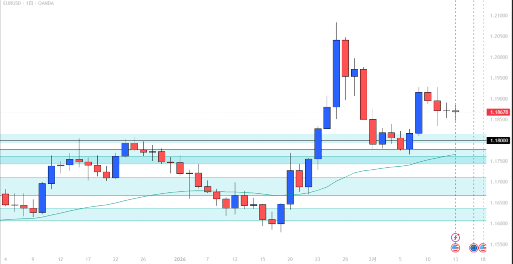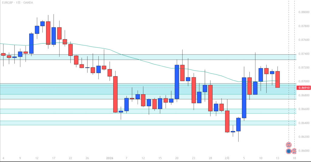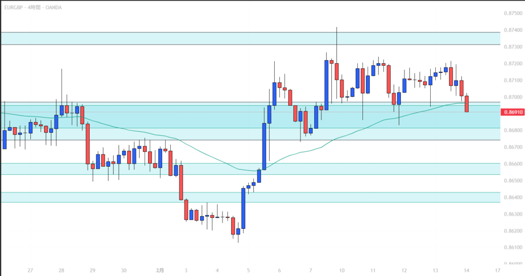 このような相場では無理にエントリーせず、明確なブレイクや下位足の転換を待つ姿勢が重要になります。