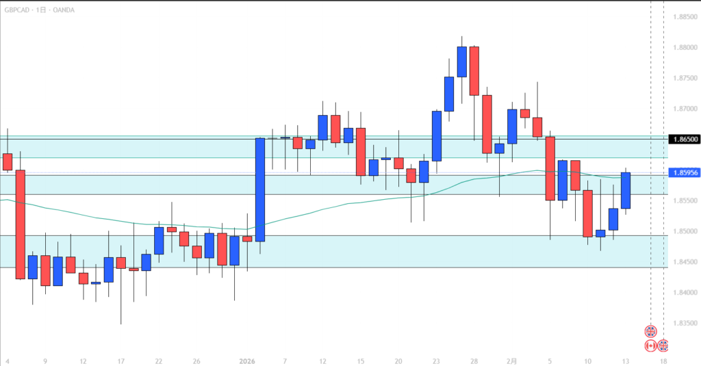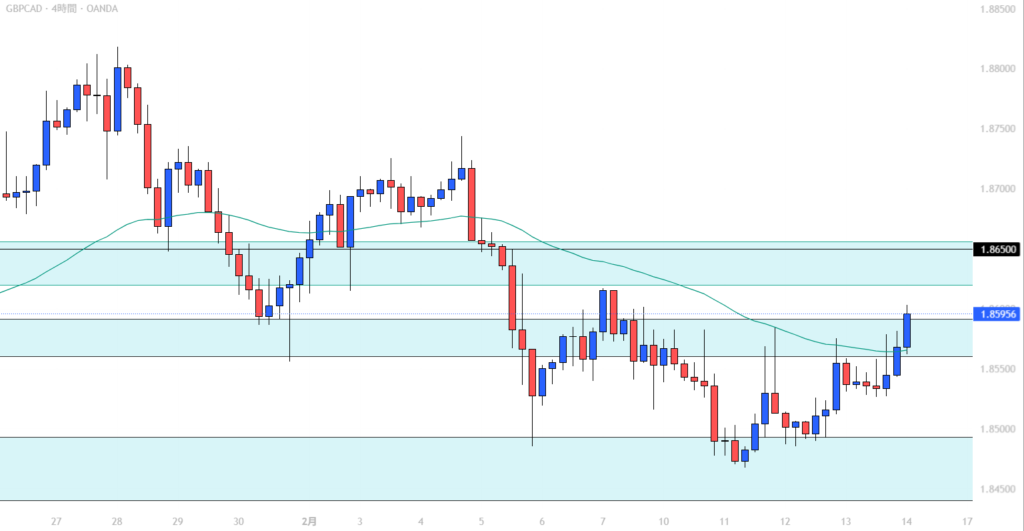 - GBP/CAD: 下落後に反発、勢力の攻防が続く展開。