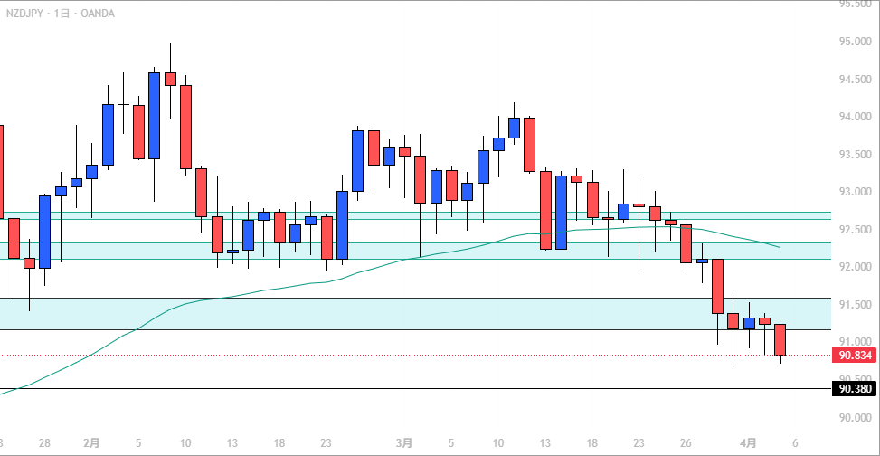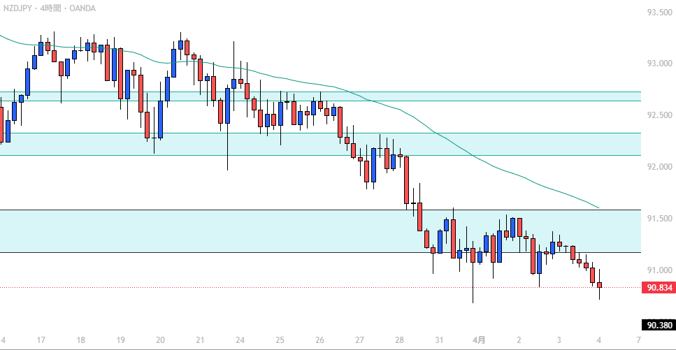 - NZD/JPY: 強い下落、トレンド継続。