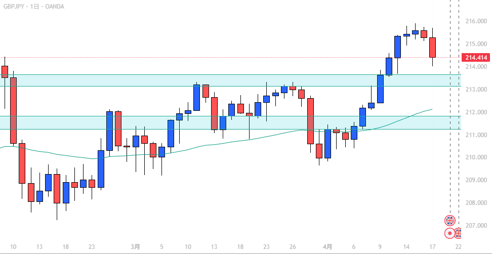 • GBP/JPY: 上昇後の調整局面、押し目形成中。