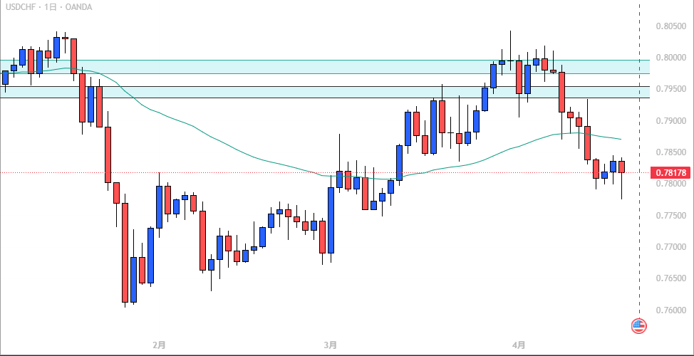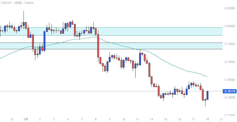 • USD/CHF: EMA下抜けで下落トレンド継続。