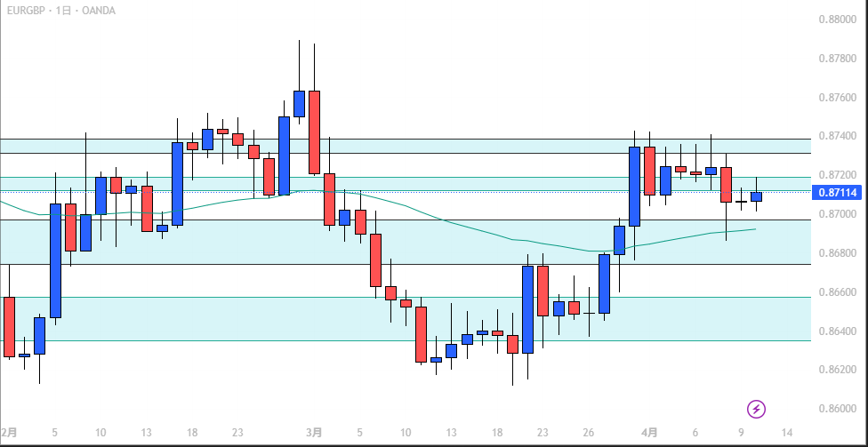 - EUR/GBP: AOI間で調整、下抜け後の加速に注目。