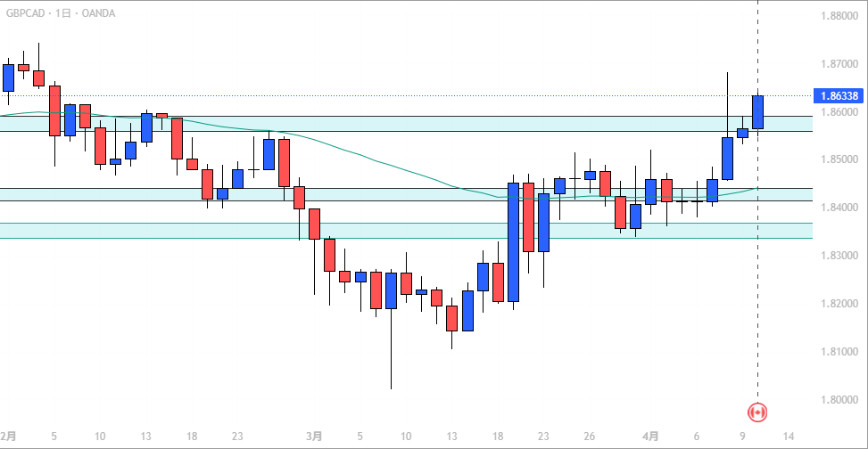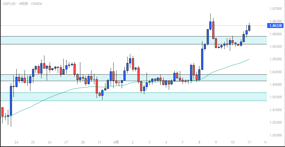 EMAを上抜け、戻り高値も突破し上目線へ転換しました。