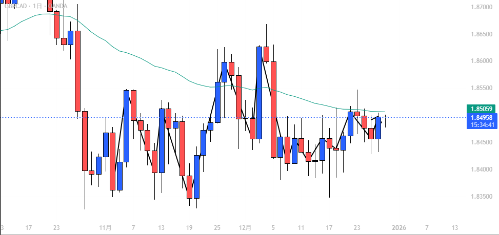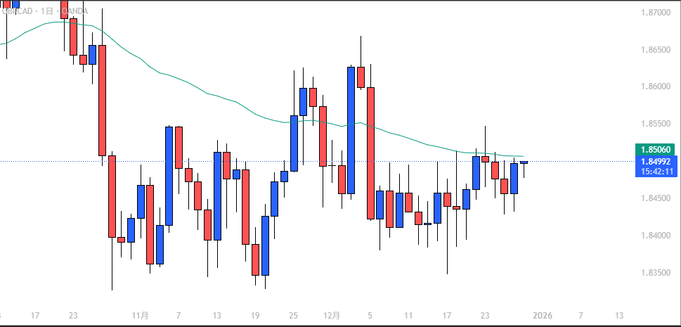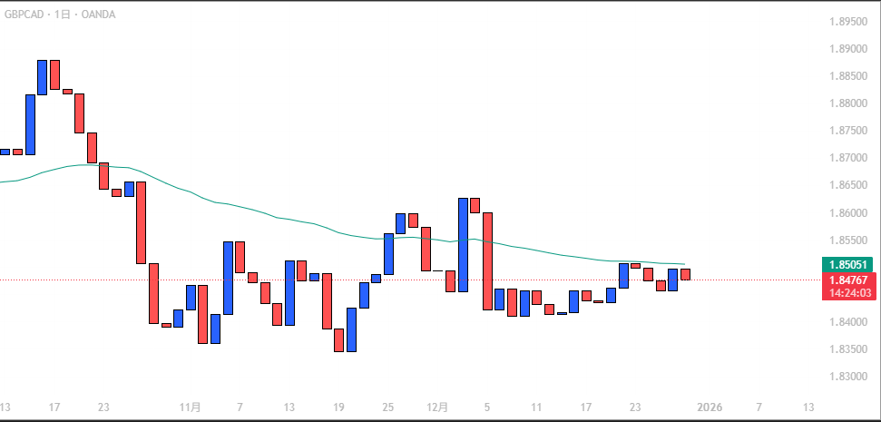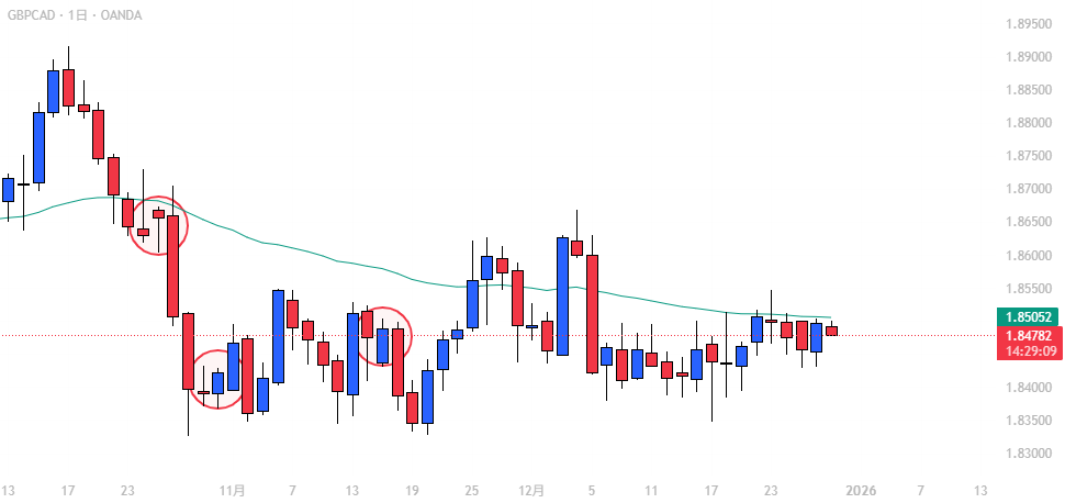 こちらは12/30(火)現在のGBP/CADの日足チャートです。このチャートを使って波形を描いていきます。