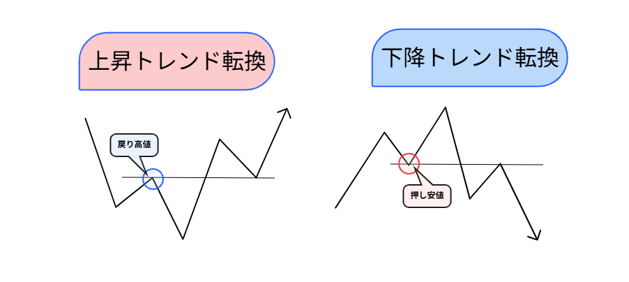 - ダウ理論(押し安値・戻り高値)を基準にする