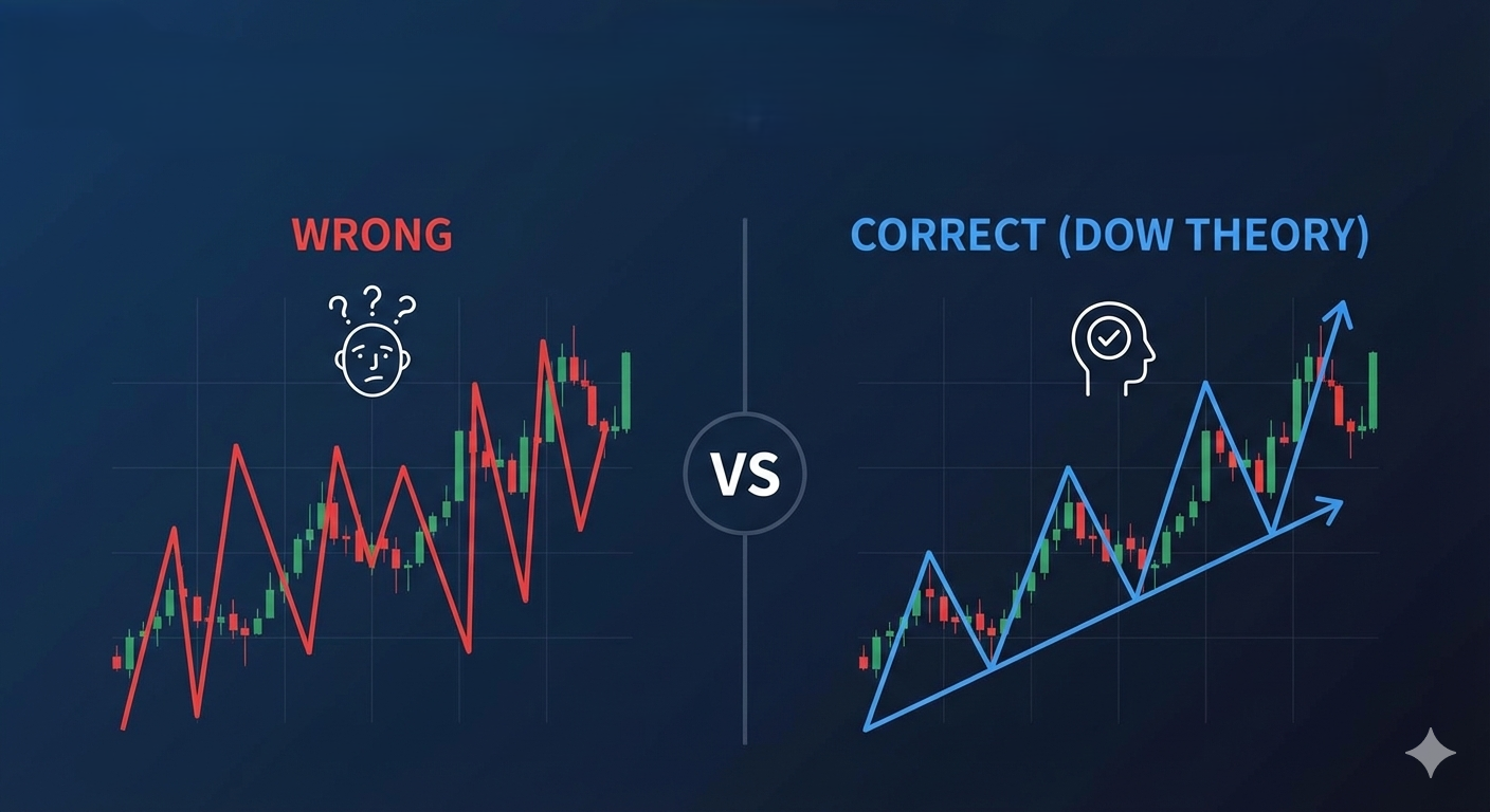 本記事では、相場の本質であるダウ理論に基づき、迷いをゼロにする正しい波の引き方を徹底解説します。この記事を読み終える頃には、あなたのチャートの見え方が劇的に変わっているはずです。