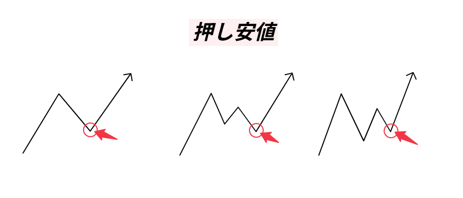 上昇トレンドにおいて、直近の高値を更新した「起点となった安値」を押し安値と呼びます。単なる安値ではなく、「高値を更新させた」という事実が重要です。